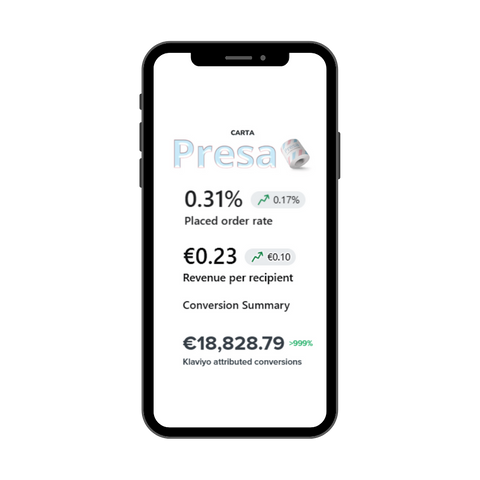 In soli 8 mesi di attività, le 34 email inviate per Carta Presa tramite Klaviyo hanno generato 18.209€ di vendite, con un guadagno medio per email di ben 535€.